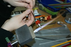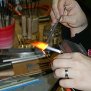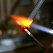 Brenner-Sauerstoff-Propangas; das benötigt man um Glas zum Schmelzen zu bringen. Ganz wichtig ist hier die Schutzbrille und wenn möglich lange Kleidung wegen herumfliegender Glassplitter und dem Flammenlicht.